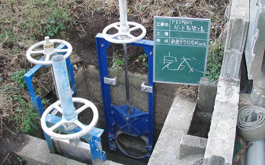 - 堰・水門・樋門など河川への大規模なゲートや、用水路等への水位調整ゲートまで、様々な大きさ、種類の機械器具類の設置工事を実施しています。