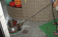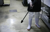 床・排水溝の洗浄に効率的な清掃作業に欠かせない高圧洗浄機にも対応。「水」ならではの使い勝手の良さです。