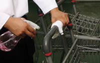 お客さま用カートにもたくさんの人が触れる物にこそ安心を。皮脂汚れ等を分解しながら、除菌力を発揮します。