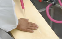 生成された電解水は、特殊な薬品などを加える必要もなく、そのまま使用できます。基本的には「水」ですから、幅広く、様々な器具と組み合わせて日常的な清掃作業に対応。 「普段使い」できる。この使い勝手のよさが特長です。